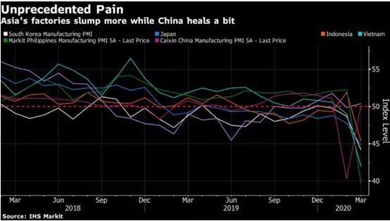 亞洲多個(gè)經(jīng)濟(jì)體的工廠產(chǎn)出指標(biāo)在4月跌至紀(jì)錄低點(diǎn),這表明即使中國開始重啟生產(chǎn)活動(dòng),世界制造業(yè)樞紐的收縮程度仍在加深。IHS Markit周一發(fā)布的數(shù)據(jù)顯示,東南亞很多國家的采購經(jīng)理人指數(shù)(PMI)在50這一榮枯分水嶺下方進(jìn)一步下滑,創(chuàng)下相關(guān)指數(shù)有史以來的最低水平。日本和韓國的指數(shù)降至2009年以來的最低水平。