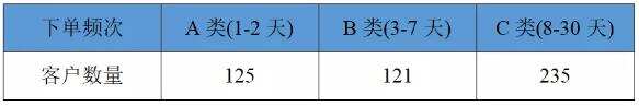 回看全球,新冠疫情感染人數已突破300萬,死亡人數超20萬。且疫情仍在不斷發酵中。經濟學家預測,此次疫情導致全球經濟至少萎縮3%,經濟損失超150萬億。3月份美股連續四次熔斷;4月份的原油期貨歷史第一次出現負值;外貿企業紛紛倒閉,勉強撐下來的也瀕臨倒閉邊緣。頻繁的黑天鵝事件讓人不寒而栗。甚至有人預測疫情會導致全球經濟大蕭條。 如此艱難的生存環境,對于許多包裝企業來講,2020年讓企業活下來便是最大的幸運。當下,因外貿訂單的急劇萎縮,許多包裝企業訂單受到嚴重影響。外貿不得不轉內需,外貿轉內需意味著現有的市場競爭將更加激烈。因此,對于二、三級廠來講,活在當下,首要解決的是吃飽的問題。市場競爭激烈的情況下各個工廠業務員都在拜訪客戶,如何通過更有效的方式拜訪客戶拿到訂單呢?今天小編要跟大家分享的是如何從現有客戶中找到訂單增量,對于二級廠,吃飽分為以下幾步: 吃飽的第一步——客戶分類。首先從ERP系統導出現有合作客戶訂單數據。根據客戶下單頻次分為日活客戶、周活客戶和月活客戶三類,分別統計每種類型客戶數量。以表1為例,統計完我們會發現每類客戶的占比。