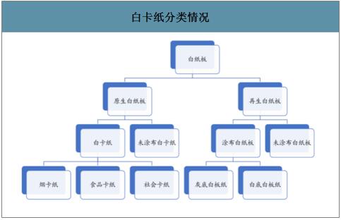 白卡紙以木漿和廢紙漿為原料,2019年需求有較大恢復。白卡紙屬于包裝用紙,可分為社會卡、食品卡和煙卡等品種,由于白卡紙硬度較高,多用于不同行業的精細包裝。白卡紙主要應用于日常消費緊密相關的行業,其下游需求集中在食品、煙酒類、醫藥、服裝和化妝品行業等。 白卡紙分類情況