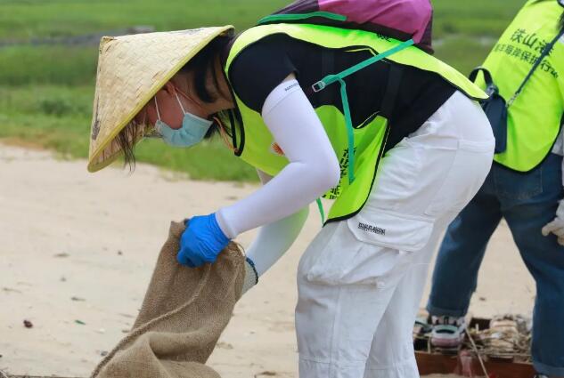 在一個多小時的活動里,志愿者們先用手或金屬夾把垃圾收集到麻布垃圾袋中,再投入鐵山港環(huán)衛(wèi)站放置在岸邊的垃圾回收箱。經(jīng)稱量統(tǒng)計,當(dāng)天活動總共清理了472.7公斤垃圾。垃圾的種類可謂五花八門,有塑料瓶、泡沫板、廢漁網(wǎng)、金屬罐、玻璃瓶,甚至還發(fā)現(xiàn)了雨靴和棉被……
