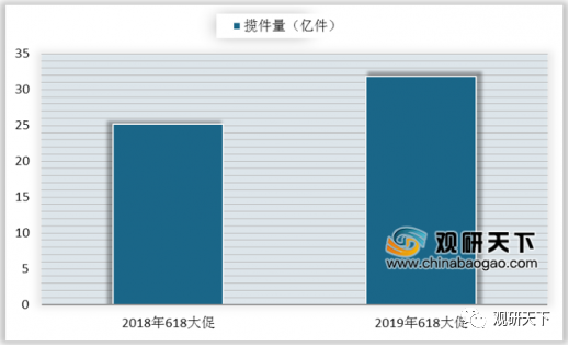 2019年618大促期間快遞攬件量與雙11對比