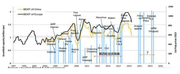 資料來源:wind,招商期貨研究所 二、紙漿無新增供應,但邊際變化加劇 (一)海外漿廠2021年前無大規模投產 國內針葉漿進口依賴度達到99%,闊葉漿也在70%以上。因此,海外漿廠的產能投放決定了總供應的變化。從目前市場普遍接受的看法在2021年前并沒有大型漿廠投產。不過由于2020年上半年疫情的影響,Arauco的MAPA項目(年產156萬噸闊葉漿)以及Klabin的PUMA II(年產100萬噸闊葉漿)出現了停工現象,雖然目前這兩個大型項目均重新開工,但是考慮到這兩個項目都在目前新冠疫情爆發的重災區,依舊存在很大不確定性,使得未來紙漿的投產預期進一步推后。此外,從統計看,所以針葉漿項目均在紙面計劃上,并未實際施工,因此未來3年都沒有大型針葉漿廠投產。 圖3:全球針葉漿與闊葉漿漿廠投產統計