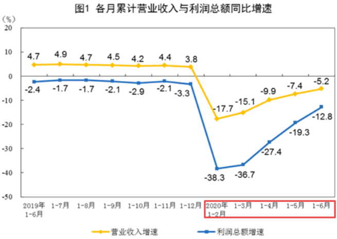 7月27日,國家統(tǒng)計局發(fā)布了2020年1-6月份全國規(guī)模以上工業(yè)企業(yè)利潤情況。數據顯示,全國規(guī)模以上工業(yè)企業(yè)實現營業(yè)收入46.31萬億元,同比下降5.2%;實現利潤總額25114.9億元,同比下降12.8%。