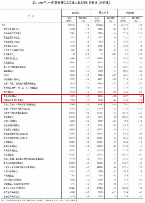 不過,隨著疫情的基本控制,造紙和紙制品業(yè)、印刷和記錄媒介復制業(yè)運行情況也逐步出現好轉,最有利的證明便是,兩大行業(yè)的在今年1-6月份的營收、利潤降幅相比今年1-5月份,均有收窄。這也意味著,今年下半年,各行業(yè)的經濟數據有望繼續(xù)回升。