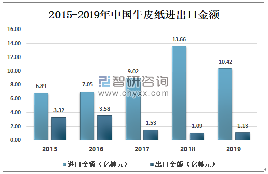數(shù)據(jù)來源:中國海關(guān)、智研咨詢整理 牛皮紙不像塑料難以降解,時間長了能夠與自然融為一體,最重要的是牛皮紙是一種可回收的再生資源。2019年中國牛皮紙進口金額為10.42億美元,比2018年進口金額減少2.24億美元。 2015-2019年中國牛皮紙進出口金額
