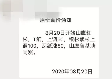 另一紙業(yè)巨頭榮成也宣布21日起漲價