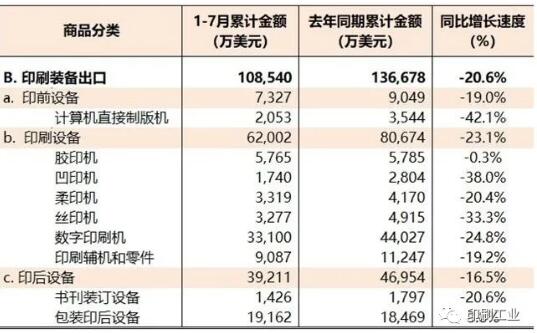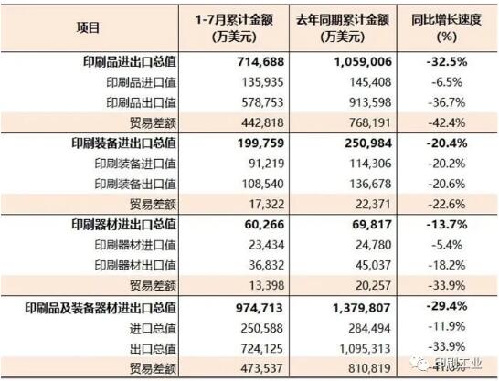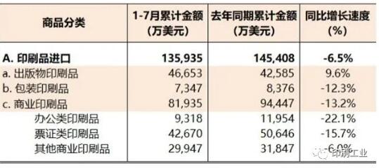 本期數據觀察 2020年1月—7月,國內印刷品、印刷裝備、印刷器材進出口總值較去年同期下降29.4%。其中,進口下降11.9%,出口下降33.9%。由于出口下降遠大于進口,國內印刷相關產業商品進出口順差幅度與去年同期相比大幅收窄(-41.6%)。 本期,國內印刷品進出口較去年同期下降32.5%。其中,進口下降6.5%,出口下降36.7%。與上期相比,國內印刷品進口和出口的下降幅度分別收窄了0.7個百分點和1.6個百分點。 本期,國內印刷裝備進出口下降幅度為20.4%,且進口下降的幅度(20.2%)與出口下降的幅度(20.6%)頗為接近。膠印機(下降26.0%)、數字印刷機(下降33.7%)是造成印刷裝備進口下降的主要因素,而數字印刷設備出口下滑幅度繼續擴大(24.8%),影響印刷裝備整體出口狀況改善。同期,包裝印后設備進口繼續保持增長(13.5%),而包裝印后設備出口也開始恢復增長(3.8%)。 本期,國內印刷器材進出口下降13.7%,而且其進口和出口下降幅度還在擴大。其他印刷油墨和水性噴墨墨水進口大幅度下降拖累印刷器材進口局面改善,而國內印刷器材各子項出口全線延續下降態勢,且降幅還在擴大。 鑒于國內外新冠肺炎疫情防控形勢的差異,國內印刷品、印刷裝備、印刷器材國際貿易出口下降幅度大于進口下降幅度的局面還將維持一段時間。本期海關進出口數據顯示,印刷品進出口下降幅度在收窄,而印刷裝備和印刷器材進出口下降幅度還在擴大。這種現象不僅可以理解為,印刷裝備、印刷器材制造企業對市場波動的反應的時間差,也可以看作是此次疫情加速印刷行業(特別是商業印刷領域)的產能整合背景下,國內印刷裝備和印刷器材市場結構的調整。無論如何,這意味著國內印刷裝備和印刷器材制造業的復蘇時間會更長! (本文作者為中國印刷及設備器材工業協會副秘書長)
