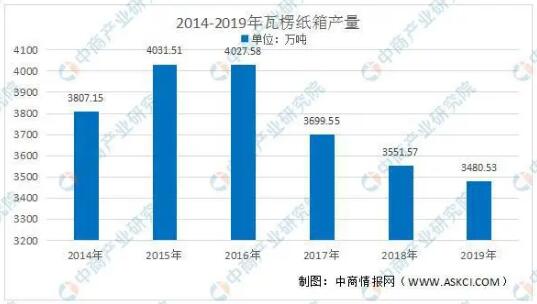 與世界主要國(guó)家相比,我國(guó)瓦楞紙箱行業(yè)雖然起步較晚,但增長(zhǎng)十分迅速。早在2003年,我國(guó)便已超過(guò)日本成為全球第二大瓦楞紙箱生產(chǎn)國(guó),僅次于美國(guó)。我國(guó)瓦楞紙箱年產(chǎn)量雖然受短期供求關(guān)系有所波動(dòng),但是自2014年以來(lái),全國(guó)瓦楞紙箱產(chǎn)量從2014年的3807.15萬(wàn)噸攀升至2019年的3480.53萬(wàn)噸,復(fù)合年增長(zhǎng)率達(dá)到17.01%,高于同期國(guó)內(nèi)生產(chǎn)總值(GDP)增速,約占我國(guó)紙包裝產(chǎn)品的80%左右。