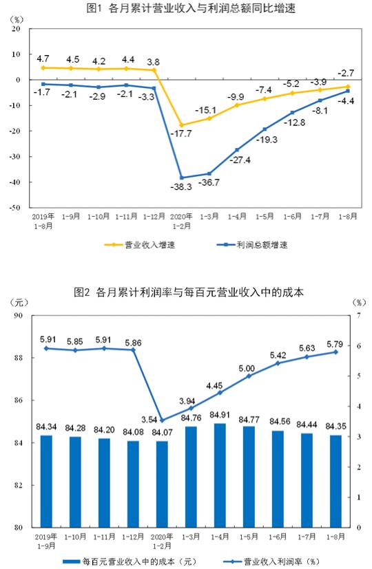 9月27日,國家統(tǒng)計局發(fā)布2020年1~8月份全國規(guī)模以上工業(yè)企業(yè)利潤情況。1—8月份,全國規(guī)模以上工業(yè)企業(yè)實現(xiàn)利潤總額37166.5億元,同比下降4.4%,降幅比1—7月份收窄3.7個百分點。 1—8月份,規(guī)模以上工業(yè)企業(yè)中,國有控股企業(yè)實現(xiàn)利潤總額9509.4億元,同比下降17.0%;股份制企業(yè)實現(xiàn)利潤總額26340.8億元,下降5.2%;外商及港澳臺商投資企業(yè)實現(xiàn)利潤總額10384.4億元,下降0.4%;私營企業(yè)實現(xiàn)利潤總額10699.7億元,下降3.3%。 值得關(guān)注的是,造紙和紙制品業(yè)實現(xiàn)利潤總額396.8億元,同比增長7.2%;印刷和記錄媒介復(fù)制業(yè)實現(xiàn)利潤總額223.6億元,同比下降10.9%。