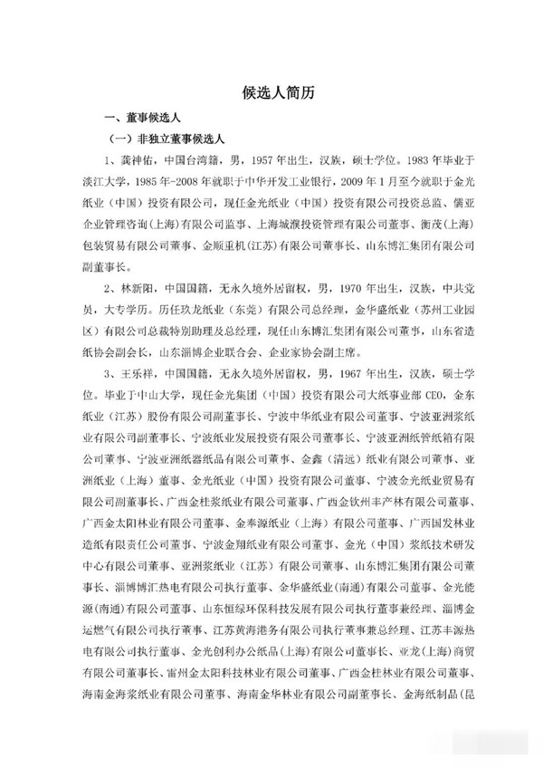 鑒于山東博匯紙業股份有限公司(以下簡稱“公司”)間接控股股東已變更為金光紙業(中國)投資有限公司(以下簡稱“金光紙業”),公司董事會、監事會擬提前進行換屆。