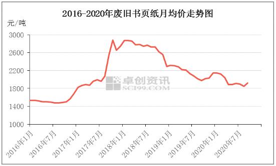 由圖可見,2016-2020年國廢書頁紙價格走勢表現(xiàn)為沖高回落。從2016年9月至2018年6月,國廢書頁紙價格整體呈現(xiàn)沖高走勢,價格波動頻繁且幅度較大,主要是在市場投機氣氛的催動下,市場對廢紙的需求明顯放大。2018年6月開始,由于中美貿(mào)易戰(zhàn)逆轉(zhuǎn)了市場投機氣氛,并持續(xù)施壓于市場心態(tài),導(dǎo)致廢舊書頁紙需求回落,廢舊書頁紙價格也進(jìn)入持續(xù)下跌走勢。2020年雖然進(jìn)口廢紙數(shù)量穩(wěn)步減少,但國內(nèi)廢書頁紙市場需求持續(xù)不振,受此影響,2020年廢書頁紙價格延續(xù)了之前的下跌走勢。 據(jù)卓創(chuàng)資訊監(jiān)測數(shù)據(jù)顯示,2020年國廢書頁紙均價為1963元/噸,同比下跌8.48%。其中,全年月均價最高值出現(xiàn)在1月份,為2146元/噸;最低值出現(xiàn)在8月份,為1850元/噸。 2020年國廢書頁紙價格呈現(xiàn)單一下滑走勢。其中,國內(nèi)疫情導(dǎo)致廢紙需求減少,1-6月廢書頁紙價格加速下跌。而暑假前后,正處廢書頁紙季節(jié)性供應(yīng)旺季,且下游需求持續(xù)低迷,導(dǎo)致7-9月廢書頁紙市場處于供過于求狀態(tài),廢書頁紙價格也呈現(xiàn)低位徘徊走勢。