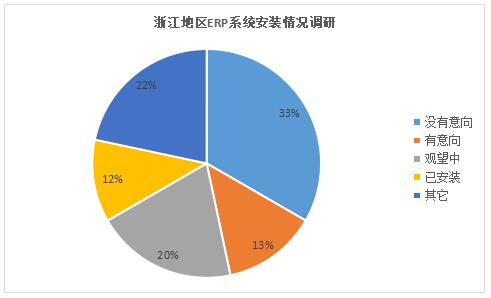 進(jìn)入數(shù)字化時(shí)代,許多傳統(tǒng)企業(yè)紛紛跳出原有發(fā)展模式,引入ERP管理系統(tǒng),通過(guò)其“供應(yīng)鏈管理”的核心思想,幫助企業(yè)改善業(yè)務(wù)流程、提高企業(yè)核心競(jìng)爭(zhēng)力。那么在包裝行業(yè),工廠安裝ERP系統(tǒng)的情況是如何?三級(jí)廠老板對(duì)ERP系統(tǒng)接受度又是如何? 近日,包裝產(chǎn)業(yè)聯(lián)盟對(duì)浙江地區(qū)近300家三級(jí)廠的ERP系統(tǒng)安裝情況進(jìn)行了抽樣調(diào)研,以進(jìn)一步了解該地區(qū)工廠ERP系統(tǒng)安裝情況,及地區(qū)工廠老板對(duì)于ERP系統(tǒng)所持態(tài)度。 數(shù)據(jù)顯示,完全沒(méi)有意向的工廠達(dá)100家,占調(diào)查樣本的三分之一;而尚在觀望中的工廠有60余家,占比20%;有安裝意向的工廠不到40家,僅占比13%;已有ERP系統(tǒng)的工廠約35家,占比只有12%。