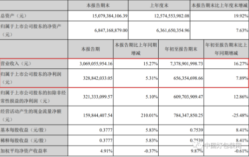 今年第三季度,合興包裝實現營收33.06億元,同比增長19.53%;實現歸屬于上市公司股東的凈利潤7959.02萬元,同比增長31.11%。