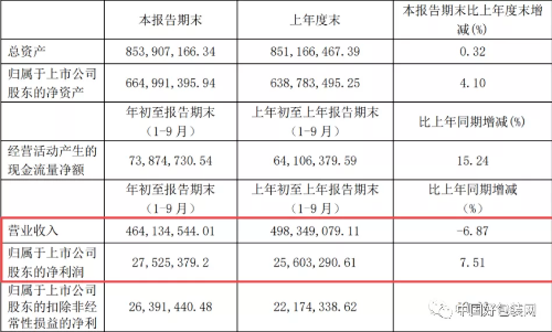 而今年前三季度,勁嘉股份實現營收30.01億元,同比增長4.39%;實現歸屬于上市公司股東的凈利潤6.6億元,同比下降1.69%。
