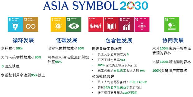 亞太森博管理委員會主任陳小榮表示:“SDGs是全球的發展目標和行動指南,我們企業必須為這個崇高的目標做出自己的貢獻。今天,亞太森博發布的2030可持續發展目標為公司下一個十年的發展指明了方向。我們向全社會做出了承諾,并將持續披露我們的行動和進展。我們堅信,這些承諾將使我們更加滿足客戶、員工和社區等相關方的期望。雖然道路充滿挑戰,但我們一步一個腳印,一定實現持續、穩定、健康的發展,在為公司和客戶創造價值的同時創造積極的環境和社會影響,為實現SDGs做出我們的貢獻! 亞太森博2030可持續發展目標的提出基于集團“保護環境,為客戶創造價值,實現利民、利國、利業”的經營理念,其制定基于調研、行業對標、公司核心競爭力的分析、未來的業務發展以及對公司各部門創新能力的全面評估。