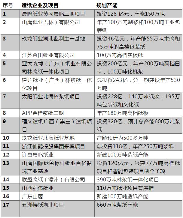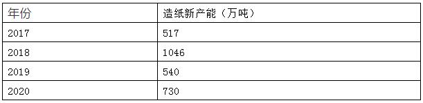 表一,2017-2020年包裝紙新增產(chǎn)能一覽
