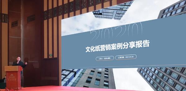上午9:00,營銷會議正式開始,文化用紙銷售總監開場致辭。2020年,在疫情突發的大背景下,文化用紙銷量不降反升,全年超額完成銷售目標,實現銷量同比增長10%,文化紙系列產品在國內市場的份額進一步提升。這一切都離不開每一位客戶的支持厚愛與公司員工的團隊協作。2021年,隨著中國經濟的不斷向好發展,需求側改革的深入,國內大循環逐步形成。隨之而來的教育、商品包裝、文化休閑等行業的需求增長都會對紙張市場產生積極的影響,市場前景可期。