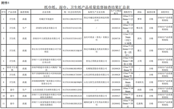 近日,山東省濟(jì)南市市場(chǎng)監(jiān)督管理局公布2020年紙巾紙、濕巾、衛(wèi)生紙產(chǎn)品質(zhì)量市級(jí)監(jiān)督抽查結(jié)果。本次共抽查了全市13家企業(yè)生產(chǎn)/銷售的20批次紙巾紙、濕巾、衛(wèi)生紙產(chǎn)品,其中,生產(chǎn)領(lǐng)域3家企業(yè)4批次,流通領(lǐng)域10家企業(yè)16批次。抽查未發(fā)現(xiàn)不合格項(xiàng)目。