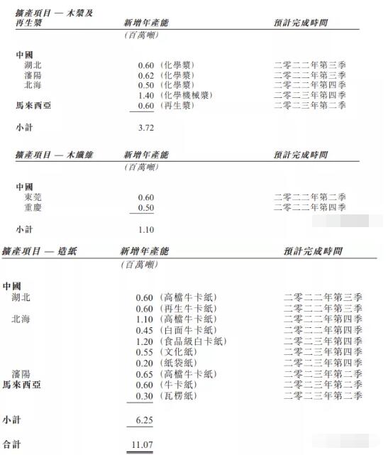 玖龍紙業(yè)計(jì)劃于2023年底之前在中國(guó)和馬來(lái)西亞新增漿紙產(chǎn)能合計(jì)1,107萬(wàn)噸/年,屆時(shí)其漿紙總產(chǎn)能將達(dá)2,949萬(wàn)噸/年。 根據(jù)玖龍紙業(yè)2月22日最新發(fā)布的業(yè)績(jī)報(bào)告,此次披露的產(chǎn)能擴(kuò)張計(jì)劃包括了312萬(wàn)噸/年木漿、60萬(wàn)噸/年再生漿、110萬(wàn)噸/年木纖維,以及625萬(wàn)噸/年造紙產(chǎn)能。大部分新產(chǎn)能都位于國(guó)內(nèi),將在2022年第二季度至2023年第四季度陸續(xù)投產(chǎn);玖龍紙業(yè)在馬來(lái)西亞則將建設(shè)60萬(wàn)噸/年再生漿、60萬(wàn)噸/年牛卡紙以及30萬(wàn)噸/年瓦楞紙產(chǎn)能,預(yù)計(jì)都將于2023年第二季度投產(chǎn)。