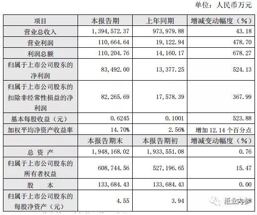 3月9日,博匯紙業發布業績快報,2020年營業收入為139.46億元,同比增長43.18%;歸屬于上市公司股東的凈利潤8.35億元,同比增長524.13%;基本每股收益0.62元。