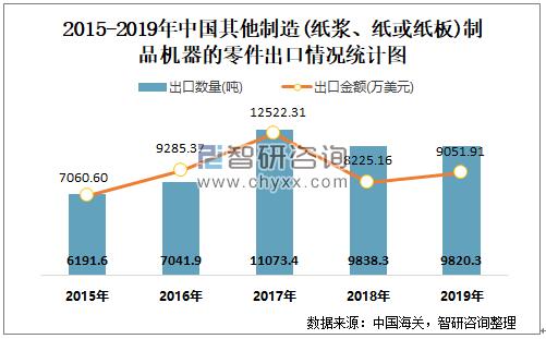 2015-2019年中國其他制造(紙漿、紙或紙板)制品機器的零件出口情況統計圖