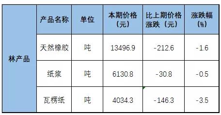 其中林產(chǎn)品領(lǐng)域,4月上旬與3月下旬相比,紙漿價格下跌30.8元,跌幅0.5%;瓦楞紙價格下跌146.3元,跌幅3.5%。