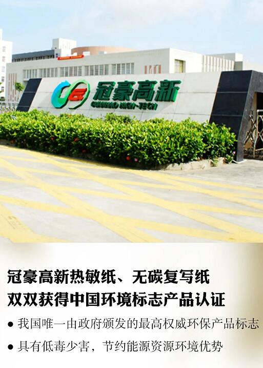 近日,中國紙業下屬企業冠豪高新熱敏紙、無碳復寫紙通過中國環境標志產品認證。