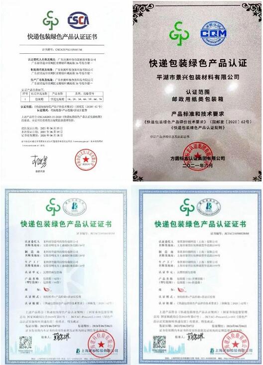 活動現(xiàn)場,玖龍智能包裝(太倉)有限公司、平湖市景興包裝材料有限公司、慈溪福山紙業(yè)、龍利得智能科技股份有限公司、奉其奉印刷科技(上海)有限公司、廣東世騰包裝有限公司、上海金山紙業(yè)有限公司、上海新通聯(lián)包裝股份有限公司等企業(yè)榮獲全國首批快遞包裝綠色產(chǎn)品認證。