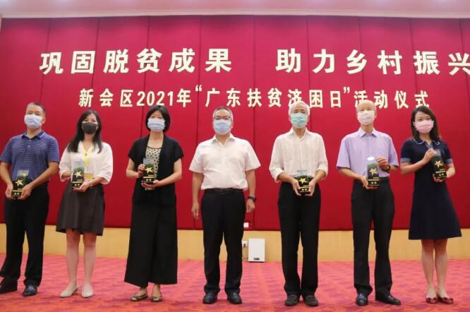 在“廣東扶貧濟(jì)困日”活動儀式上,熱心企業(yè)和個人分批上臺捐贈支票,文彥、梁明建、梁遠(yuǎn)球、林社攸分別向“2019年新會區(qū)葵鄉(xiāng)慈善捐贈獎”的獲獎單位或個人頒發(fā)獎牌。儀式還公布了2019年捐贈額10萬元以上(含10萬元)30萬元以下嘉賓名單及捐贈金額,組織觀看了新會區(qū)扶貧濟(jì)困日宣傳短片、新會—寧明扶貧協(xié)作宣傳短片,介紹了“廣東扶貧濟(jì)困日”活動開展十周年總結(jié)及慈善公益捐款使用情況。