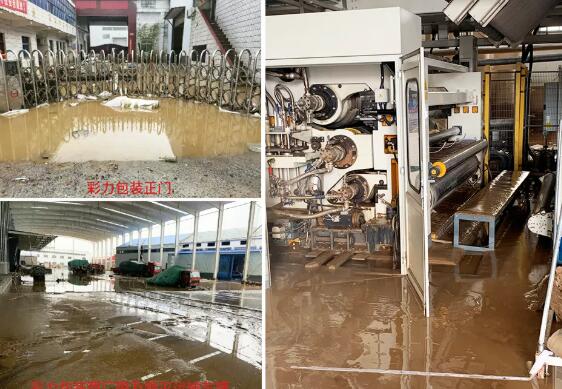 在“720河南大暴雨”受災(zāi)地區(qū)中,位于鄭州市新密市的河南彩力包裝有限公司,因暴雨來襲,各類經(jīng)濟(jì)損失高達(dá)8000余萬元。作為瓦楞包裝機械行業(yè)的龍頭企業(yè),京山輕機在汛情得到控制后,其工作人員第一時間趕赴現(xiàn)場,助力多家受災(zāi)客戶復(fù)工復(fù)產(chǎn)。 河南彩力包裝嚴(yán)重受損 河南彩力包裝有限公司坐落于鄭州新密市大槐鎮(zhèn)雙洎河邊,總廠房占地面積約20000平方米,技術(shù)投資高達(dá)8000多萬元,預(yù)計年產(chǎn)值約1.5億元,擁有京山高速紙板線一條、印刷機多臺以及其他成套紙箱包裝設(shè)備,是一家同時具備紙板生產(chǎn)和紙板印刷的大型包裝企業(yè)。 7月20日,在洪水到來之前,河南彩力包裝有限公司全體員工組建抗洪小隊,分批進(jìn)行值班,保證公司人員與財物的安全。