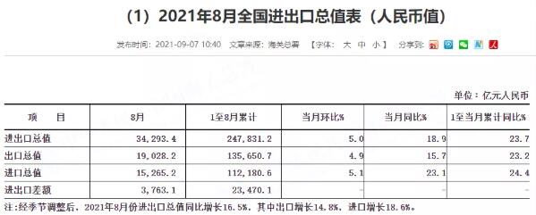 從出口數據來看,前八月出口暴增23%,表現十分亮眼,顯示出中國作為世界工廠的強大韌性。