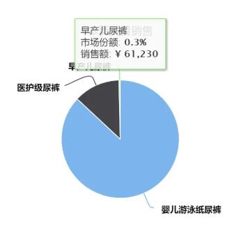 圖片來源:紙尿褲關注 同時,紙尿褲關注認為,伴隨我國二胎、三胎政策的放開,高齡產婦數(shù)量的增加,未來早產兒尿褲市場將擁有其固定增量。國家衛(wèi)生計生委相關人士也曾表示,自全面兩孩政策實施以來,我國出生人口數(shù)量有所增長,高齡孕產婦比例也明顯增多,有更多早產兒出生。 增速迅猛的同時,受限于“小眾群體”的小眾需求,早產兒尿褲的市場體量并不大,據(jù)愛魔鏡數(shù)據(jù)顯示,綜合天貓、淘寶兩大平臺,2021年1-9月特護尿褲的幾個子品類市場份額中,早產兒尿褲僅為0.3%。