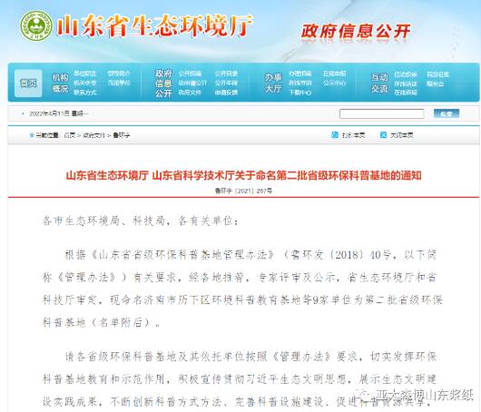 根據《山東省省級環?破栈毓芾磙k法》要求,近日,省生態環境廳、省科學技術廳聯合組織開展了第二批省級環?破栈氐纳陥蠛驮u審工作,經專家審核、評議,全省共有9家單位獲此殊榮,位于日照經開區的亞太森博(山東)漿紙有限公司名列其中。