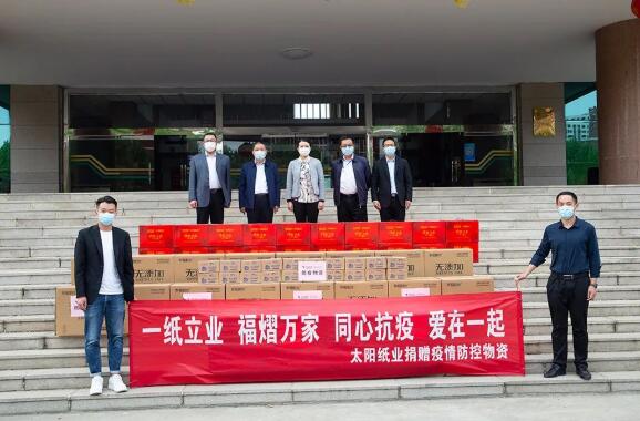 太陽紙業向曲阜市慈善總會以及曲阜市魯城街道辦事處捐贈防疫物資