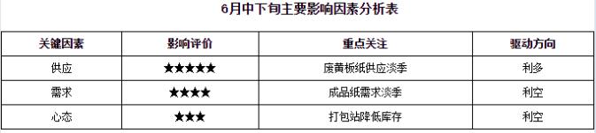由此,卓創資訊預計,6月中下旬廢黃板紙市場價格或繼續反彈后及時轉入下跌。首先,當前成品紙推漲氣氛正在升溫,且廢黃板紙處于供應淡季,廢黃板紙價格反彈走勢或因此延續。其次,當前處于成品紙需求淡季,且國內消費有待恢復,成品紙需求或難有較強表現,此不利于廢黃板紙價格反彈深度。最后,打包站廢黃板紙庫存持續增加,一旦紙廠廢黃板紙價格漲勢暫緩,打包站或再次集中出貨,屆時廢黃板紙價格可能及時下跌。