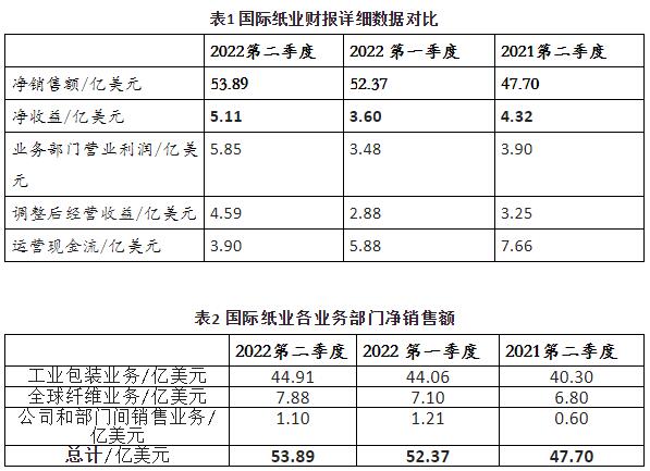 7月底,國際紙業公布了其2022年第二季度財報。報告數據顯示: