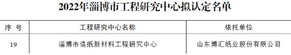 經過山東博匯紙業技術部研發處相關資料的準備及申報、桓臺縣發改委審核推薦、第三方專家評審等程序,山東博匯紙業股份有限公司于2022年9月成功認定“淄博市造紙新材料工程研究中心”。