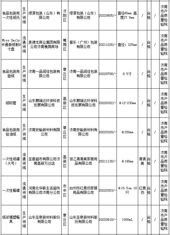 2022年9月29日,濟南市市場監(jiān)督管理局網站公布2022年食品用紙包裝容器產品質量市級監(jiān)督抽查結果。