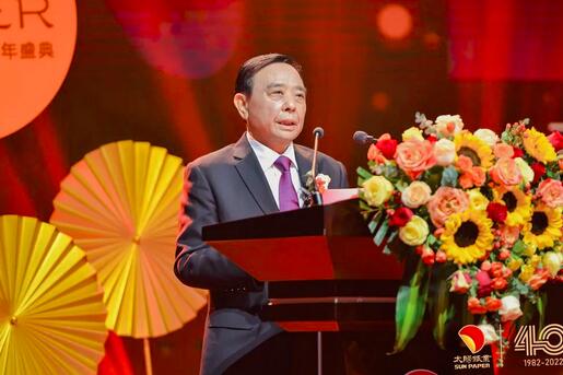 曹振雷理事長在致辭中表示,太陽紙業四十年,走出了一條具有中國特色和國際化優勢相結合的發展之路,是我國造紙行業改革開放輝煌成就的重要組成部分,是我國造紙行業未來的希望。希望太陽紙業以實現千億強企為動力,持續優化產業結構,持續擴大林漿紙一體化優勢,持續推進產業轉型和企業高質量、可持續發展,在推動實現“中國式現代化”偉大目標進程中,做出中國龍頭造紙企業的積極貢獻。