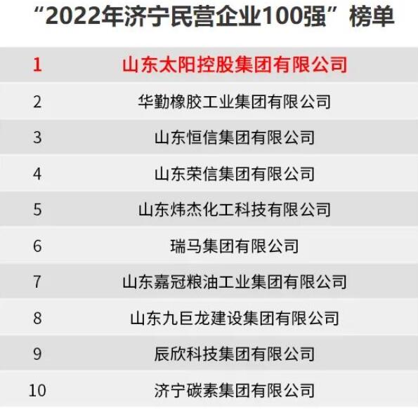 12月30日,“2022年濟(jì)寧民營企業(yè)100強(qiáng)”正式發(fā)布,太陽紙業(yè)控股股東山東太陽控股集團(tuán)有限公司位列榜單首位。