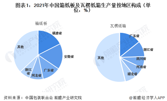 紙制品包裝區域總體發展分析 我國東部沿海地區在紙制品包裝工業領域也處于絕對領先地位。據中國包裝聯合會統計數據顯示,2021年,我國主要紙制品包裝產品產量前五地區大部分位于東部沿海,其中箱紙板產量排在前五位的地區依次是福建省、安徽省、廣東省、河北省以及浙江省,五省箱紙板合計產量占全國產量的63.03%;瓦楞紙箱產量排在前五位的地區依次是廣東省、浙江省、四川省、河南省以及湖北省,五省瓦楞紙箱產量合計占全國產量的46.20%。