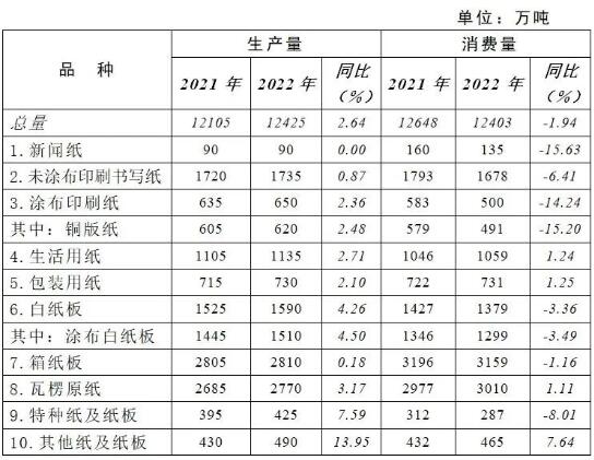 ( 2022年紙及紙板生產和消費情況)