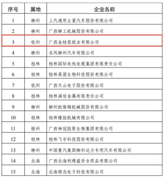近日,廣西壯族自治區商務廳公布了第十批“廣西重點培育和發展的外貿品牌”企業(以下簡稱“廣西重點外貿品牌”),全區共26家企業入圍,其中欽州市3家,金桂漿紙進入該名單。“廣西重點外貿品牌”有效期為3年,逾期自動失效,需重新申報。 第十批“廣西重點培育和發展外貿品牌” 企業名單