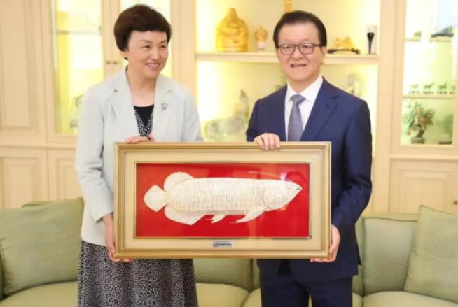 金光集團副總裁黃榮年、香港建設(控股)有限公司主席兼行政總裁黃剛、金光集團APP(中國)副總裁翟京麗、金光集團 APP(印尼)副總裁許福順等領導代表金光集團董事長兼總裁黃志源先生,向陳旭主任及各位領導,表示最誠摯的歡迎與敬意!