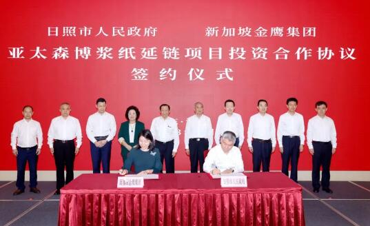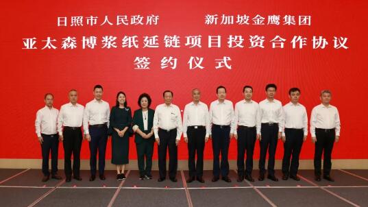 7月30日上午,金鷹集團(tuán)與日照市政府關(guān)于亞太森博漿紙延鏈項(xiàng)目投資合作協(xié)議簽字儀式在濟(jì)南山東大廈舉行。