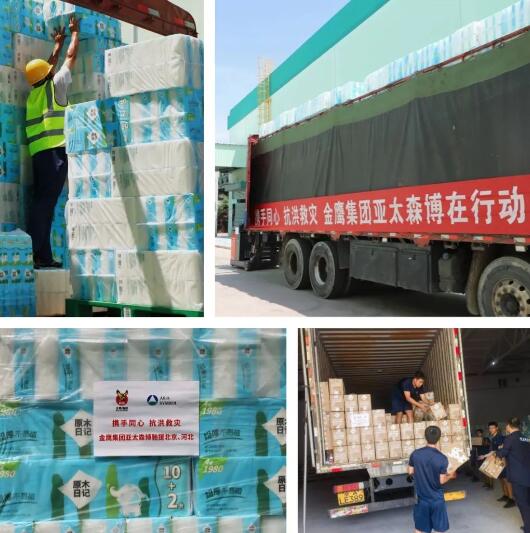 受臺風“杜蘇芮”影響, 北京、河北等地區遭受強降雨天氣,并引發部分地區洪澇與地質等災害,重大汛情牽動著金鷹集團、亞太森博的心。在中國僑聯、北京市委統戰部、北京市僑聯、河北省委統戰部的大力支持下,金鷹集團聯合中國華僑公益基金會、北京市僑商會、北京市華僑事業基金會、保定市紅十字會,通過旗下企業亞太森博(山東)漿紙有限公司緊急籌措價值150萬元的“原木日記”抽紙、卷紙等物資為受災地區群眾、防汛一線人員提供支持,為災區人民抗洪救災、重建家園貢獻一份企業力量。8月10日,經過多方面密切協作,亞太森博捐贈物資已全部到位。