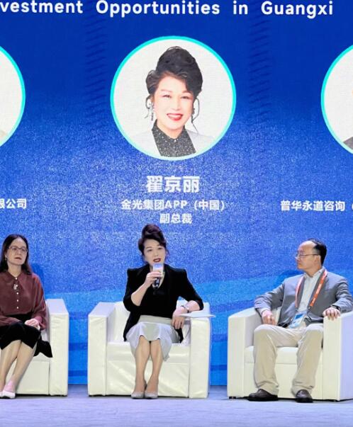 16日,由中國商務部、廣西壯族自治區人民政府舉辦的“投資中國年—走進廣西”專場活動在廣西南寧市舉行。在“東盟國家企業分享投資廣西機遇”圓桌對話環節,包括金光集團APP(中國)副總裁翟京麗在內的五位企業家著眼國內外發展大勢,緊扣廣西發展前景,分享投資廣西發展機遇。
