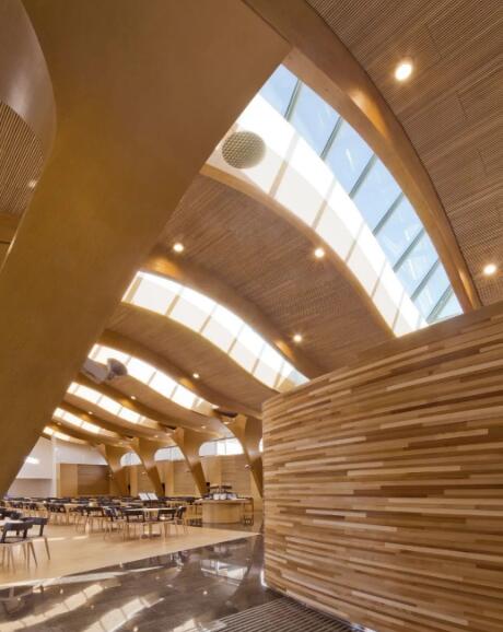 案例:芬林集團(tuán)總部的食堂,內(nèi)部完全用了 LVL作為內(nèi)飾