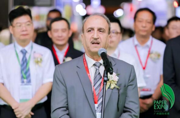 巴基斯坦紙商協會副會長KhamisSaeedButt先生 開館儀式由廣東省工業和信息化廳消費品工業處方樂羽調研員,馬來西亞駐廣州總領事館商務處、馬來西亞對外貿易發展局商務領事哈里斯先生,廣東省造紙行業協會會長翁卓先生,玖龍紙業(控股)有限公司集團銷售總經理張篤令先生,理文造紙集團執行董事李浩中先生,巴基斯坦紙商協會副會長Mr.KhamisSaeedButt先生,緬甸制漿造紙工業協會會長KyawMin先生,福建省紙業協會會長林小河先生,廣州造紙集團有限公司總經理助理申斌先生,江門市百思特新材料科技有限公司總經理邱葉偉先生,歐佩德伺服電機節能系統有限公司造紙事業部總經理吳紅女士共同剪彩。