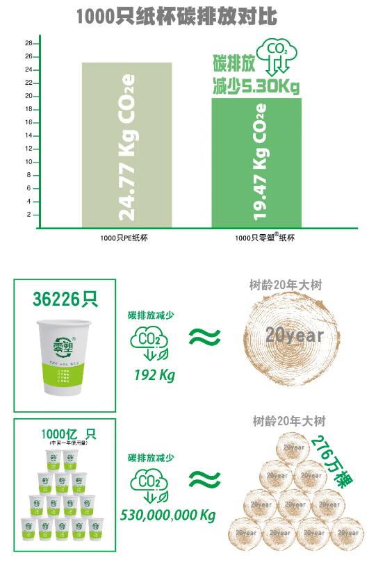 上海市商務委員會副主任諸旖女士致辭 《一次性紙杯全價值鏈碳足跡分析報告》亮相2024上海碳博會 根據《一次性紙杯全價值鏈碳足跡分析報告》顯示,水性涂層紙杯相較于傳統的PE淋膜紙杯,具有顯著的環境優勢。研究表明,每生產1000只PE淋膜紙杯的全生命周期碳排放為24.77kgCO2e,而同等數量的水性涂層紙杯僅排放21.92kgCO2e。更值得一提的是,水性涂層紙杯在回收再利用后,其碳排放量更是降至19.47kgCO2e,總計減少了5.30kgCO2e的排放,由此可得,36226只水性涂層紙杯產生的總減排量大約相當于種植了一棵樹齡為20年的參天大樹。 數據顯示,中國每年約使用1000億個紙杯,總減少碳排放大約相當于276萬棵樹齡為20年的參天大樹。 這種環保優勢來源于水性涂層紙杯的易回收性和再利用性。傳統的PE/PLA淋膜紙杯因其塑料涂層難以分離,回收利用率極低,而水性涂層紙杯則能夠輕松被回收并制成再生紙漿,從而避免了大量的碳排放和資源浪費。